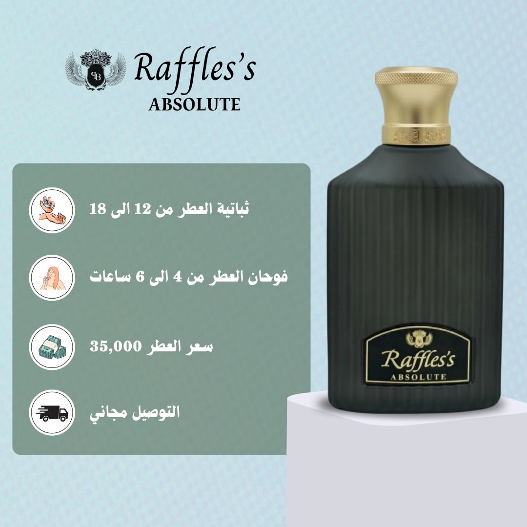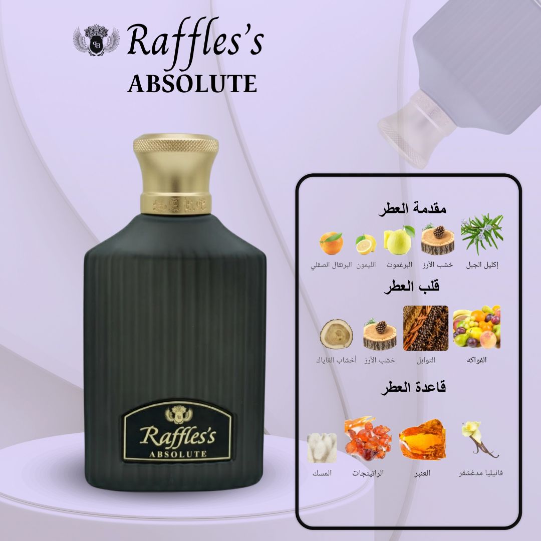 عطر Raffles’s Absolute توليفة عطرية متوازنة تجمع بين الانتعاش الحمضي، دفء التوابل، وفخامة القاعدة الشرقية، مما يجعله خياراً مثالياً لمن يبحث عن التميز.