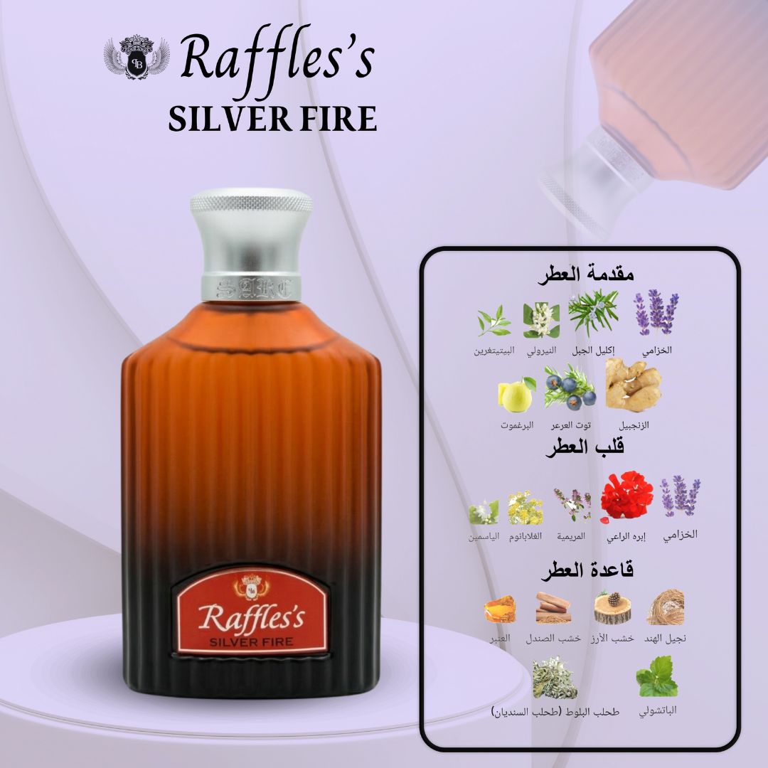 عطر Raffles’s SILVER FIRE هو تجسيد للأناقة الكلاسيكية بلمسة عصرية “فوجير” (Fougère)، يجمع بين الانتعاش الحاد والعمق الخشبي الدافئ.